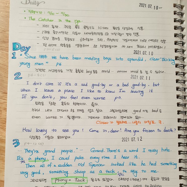 이번에 <호밀밭의 파수꾼>을 읽고 소설책에 대한 편견이 깨졌어요 소설의 효과가 이런거구나.. 실력이 달려 번역서를 보랴 원문보랴..결국 완독은 실패했지만 여러모로 많이 배우고 도전받고 존경스러운 도디와 좋은 사람들과 교제하며..득이 많았던 아주 성공적인 경험을 했네요^^ 감사합니다 🙏